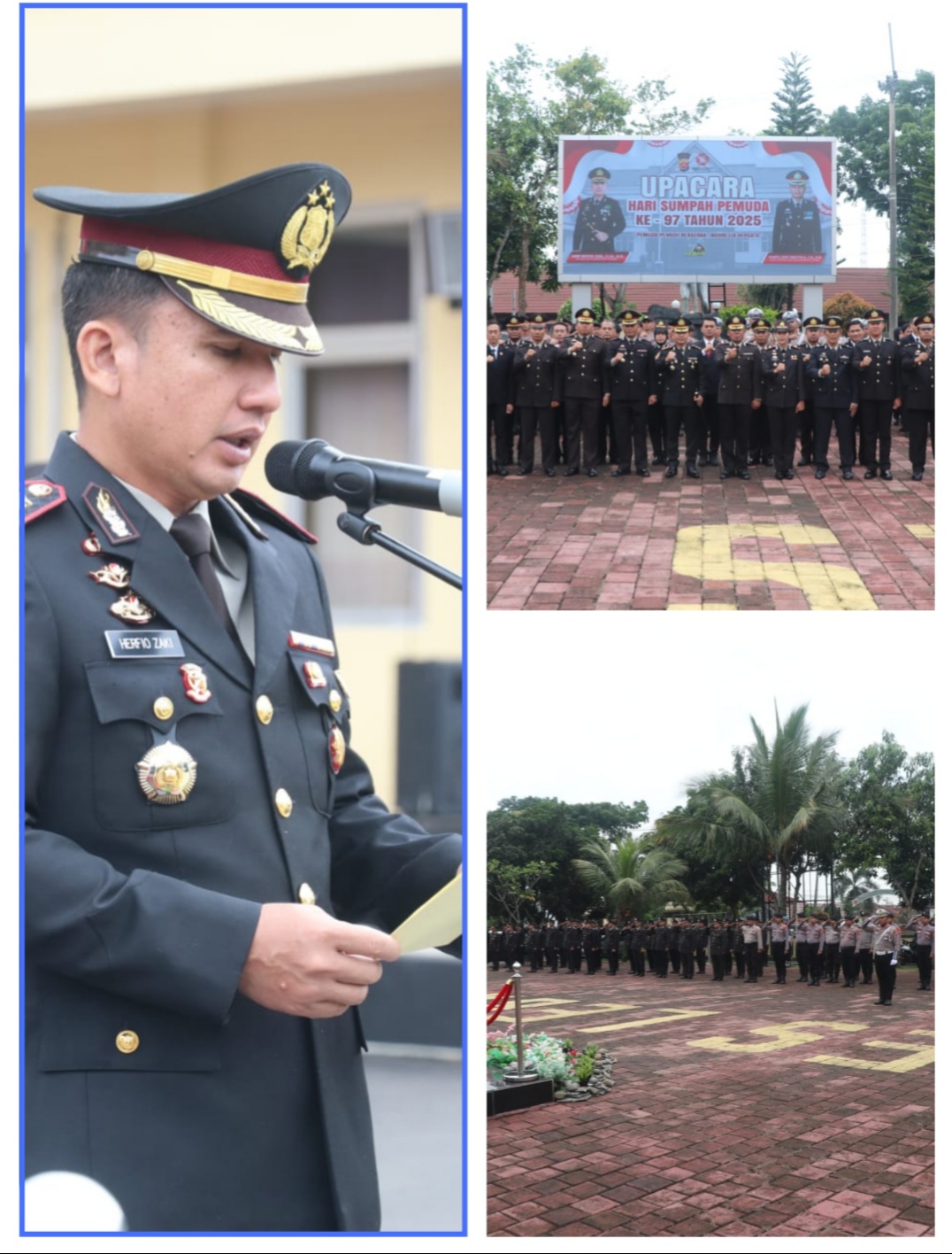 “Hari ini kita berkumpul untuk memperingati Hari Sumpah Pemuda yang ke-97. Sebuah momen bersejarah yang menandai lahirnya kesadaran nasional bahwa pemuda dari berbagai daerah, suku, dan bahasa memiliki tujuan yang sama, yaitu menjadikan Indonesia sebagai bangsa yang merdeka dan bersatu,” ujar AKBP Herfio dalam amanatnya.