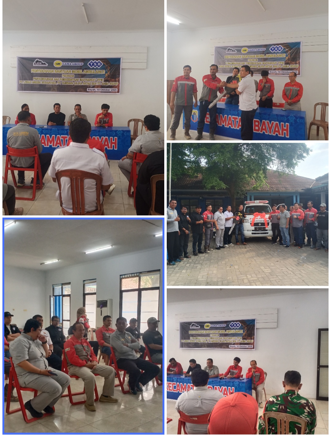 Gemasiber80news.com,LEBAK – PT GAMA Group, PT Lebak Energi Nusantara (PT LEN) dan PT Tambang Silika Bayah (PT TSB) menyerah satu unit mobil Ambulance Program Pengembangan dan Pemberdayaan Masyarakat (PPM) ke Karang Taruna Kecamatan Bayah Kabupaten Lebak Provinsi Banten bertempat di Aula Kantor Kecamatan Bayah Jum’at (10/10/2025)