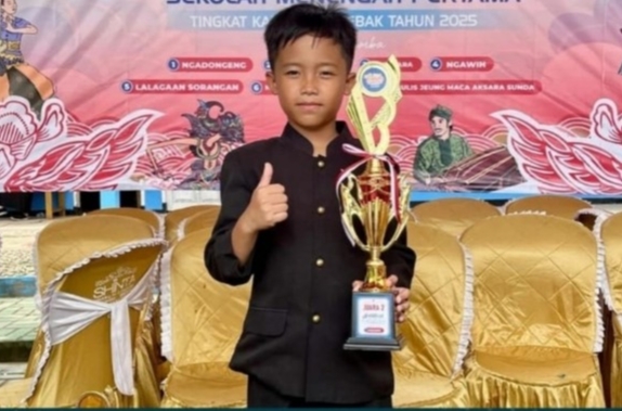 Gemasiber80news.com, LEBAK – Raska Al Gifhari siswa Sekolah Dasar Negeri 2 Muara Ciujung Timur (SDN 2 MCT) Rangkasbitung berhasil meraih juara 2 pada cabang lomba ngawih dalam ajang Festival Tunas Bahasa Ibu (FTBI) tingkat Kabupaten Lebak, yang digelar di SMPN 1 Bayah, Banten Selatan, Rabu (29/10/2025).