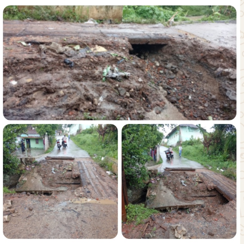 Dan kami antusias untuk sementara memakai kayu kelapa supaya bisa di lalui oleh kendaraan roda empat maupun roda dua dan kini sudah satu tahun menggunakan kayu kelapa dan kini ambrol kembali yang di duga di akibatkan dengan sering nya turun hujan dan sering nya di lalui oleh kendaraan yang mengangkut bahan material, ungkap saepudin. Selasa 11 november 2025.