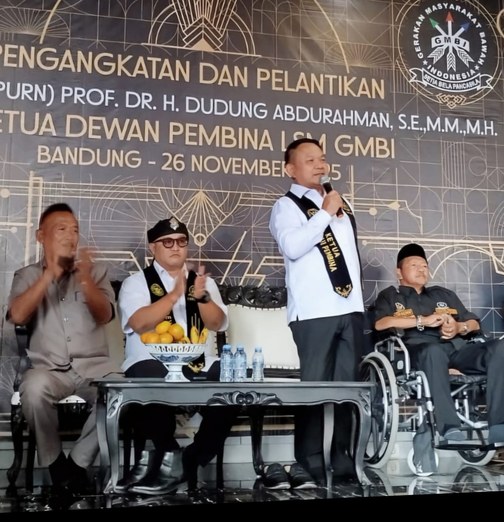 Gemasiber80news.com,BANDUNG – Bertempat di Markas Besar DPP LSM GMBI, Padepokan Al Fauzan, Kelurahan Cibeunying, Kecamatan Cimenyan, Kabupaten Bandung, Jenderal TNI (Purn) Prof. Dr. H. Dudung Abdurahman, SE., MM., MH selaku Penasehat Khusus Presiden Bidang Ketahanan Nasional, resmi dilantik sebagai Ketua Dewan Pembina LSM GMBI. Prosesi pelantikan dilakukan langsung oleh Ketua Umum LSM GMBI, Moh. Fauzan Rachman, SE, dengan disaksikan oleh jajaran Dewan Kehormatan, KGP Ramlan Samsuri, SE., CLA., CPLA (Kakang Prabu), Dewan Pengawas H. Yudi Muhyidin Koswara, pengurus DPP LSM GMBI, anggota dari wilayah Bandung serta para tokoh dan tamu undangan yang hadir.