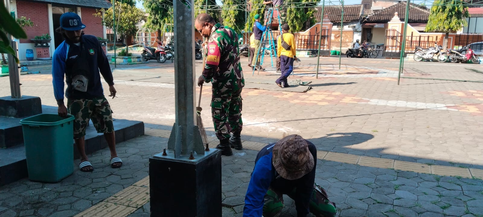 Dalam mewujudkan lingkungan yang bersih dan Asri, Babinsa Kelurahan Joyotakan Serma Rumbawa bersama saberling dan warga sekitar Kelurahan Joyotakan melaksanakan kerja bakti pembersihan rumput liar disekitar taman cerdas Joyotakan yang sudah panjang.