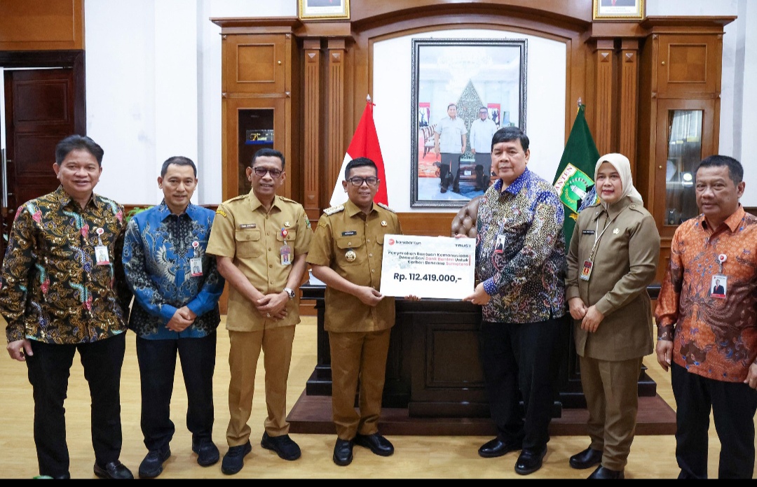 Gemasiber80news.com,SERANG— Gubernur Banten, Andra Soni, secara simbolis menerima bantuan dana kemanusiaan sebesar Rp112,4 juta dari PT Bank Pembangunan Daerah Banten Tbk (Bank Banten). Bantuan ini diserahkan dalam rangka mendukung kegiatan Penggalangan Dana Pemerintah Provinsi Banten bagi korban bencana banjir di Pulau Sumatera.