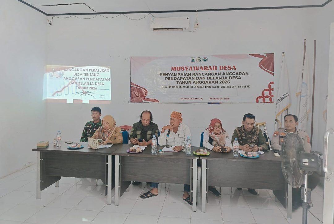 “Benar Bhabinkamtibmas Polsek Rangkasbitung,kita perintahkan untuk menghadiri kegiatan rapat Musdes Renacana Anggaran Pendapatan dan Belanja Desa (APBDes) anggaran tahun 2026 yang di laksanakan di kantor Desa Narimbang Mulia.