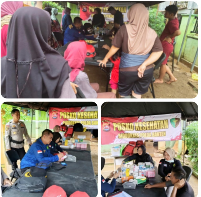 Kegiatan pelayanan kesehatan tersebut dilaksanakan di Posko Pengungsian SD Sukamaju dan dimulai sejak pukul 09.00 WIB hingga selesai. Tim medis Biddokkes Polda Banten memberikan pemeriksaan kesehatan, konsultasi medis, serta pemberian obat dan vitamin kepada masyarakat terdampak banjir.