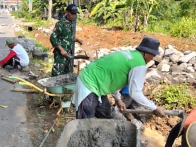Tugas pokok TNI salah satunya adalah membantu Pemerintah Daerah, diantaranya membantu percepatan pembangunan desa seperti ini. Kita selaku Babinsa adalah ujung tombak satuan kewilayahan akan selalu mendukung program pemerintah di segala bidang seperti pertanian, pembangunan, kesehatan dan masih banyak lagi,” ucapnya