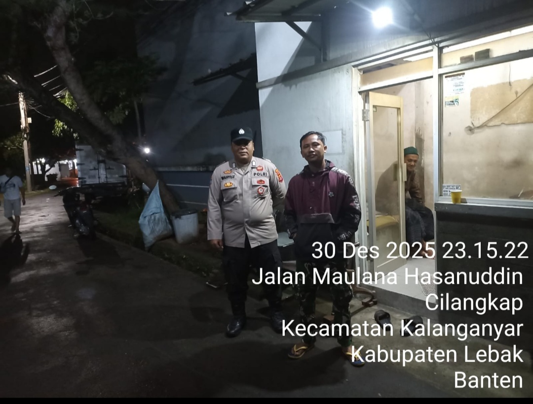 Gemasiber80news.com,LEBAK – Berikan rasa aman, Peersonil Polsek Rangkasbitung AIPTU Rahmat Subiakto dan BRIPKA Wahyu Triono,giat patroli dialogis dan Sambangi Security perumahan Cempa Residence,Desa Cilangkap, Kecamatan Kalanganyar, Kabupaten Lebak.Selasa malam 30 Desember 2025,pukul.23.15 Wib.