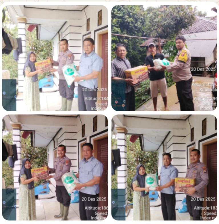 Gemasiber80news.com,LEBAK – Polsek Cilograng-Guna Meringankan beban dan kepedulian Kapolsek Cilograng bersama anggota memebrikan bantuan sembako kepada para korban bencana alam di wilkum Kecamatan Cilograng Kabupaten Lebak Sabtu (20/12/2025).
