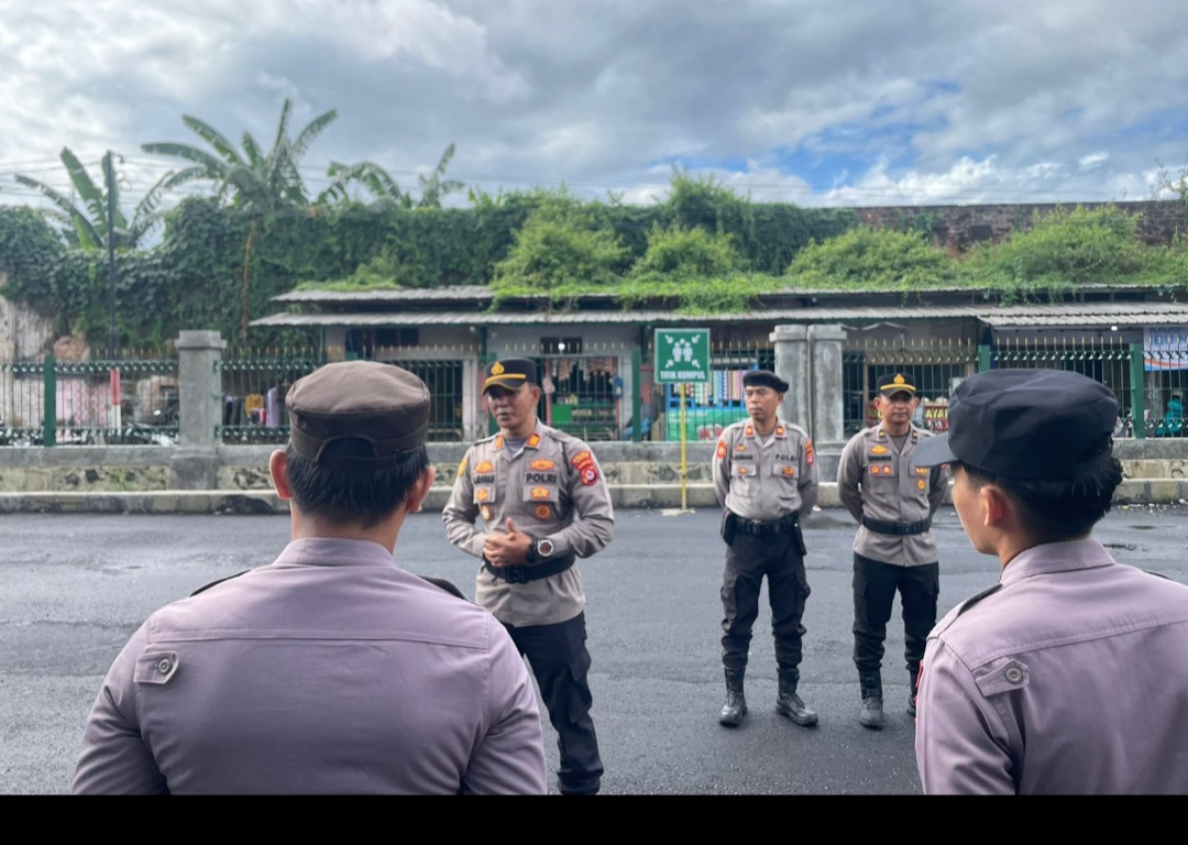 Anggota yang melaksanakan apel di Posyan Nataru di pimpin langsung oleh Kapolsek Rangkasbitung AKP Adi Irawan,.SH,di ikuti personil Polsek Rangkasbitung dan Personil Polres Lebak.