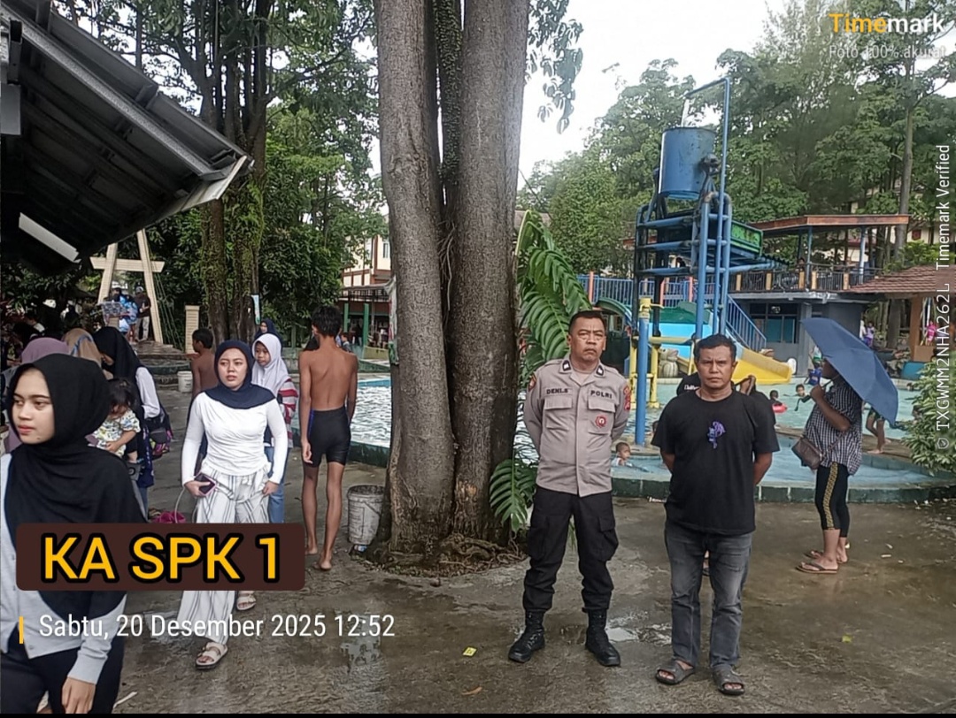 Anggota Polsek Rangkasbitung dalam patrolinya selalu memberikan himbauan Kamtibmas serta berdialog dengan para pengunjung yang ada di obyek wisata kolam renang tersebut.Sabtu (20/12/2025)