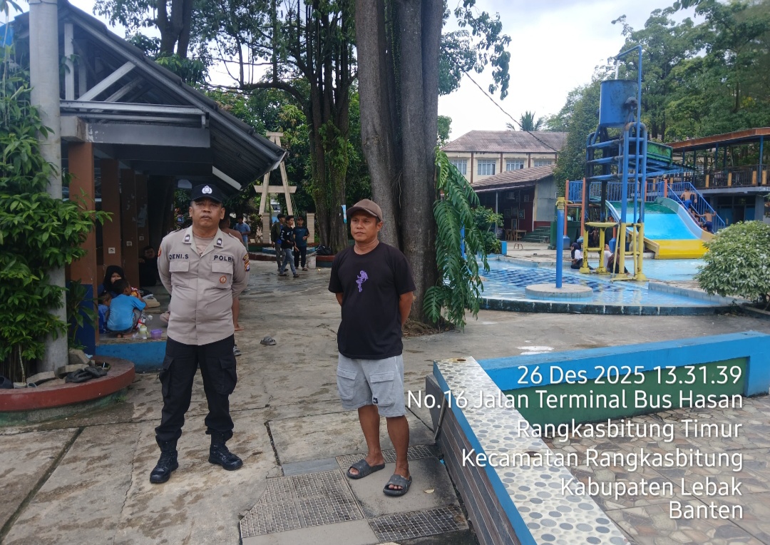 Gemasiber80news.com,LEBAK– Anggota Polsek Rangkasbitung Polres Lebak,AIPTU Deni.S dan AIPTU Terry.MS, melaksanakan giat Patroli serta monitoring tempat wisata kolam renang.
