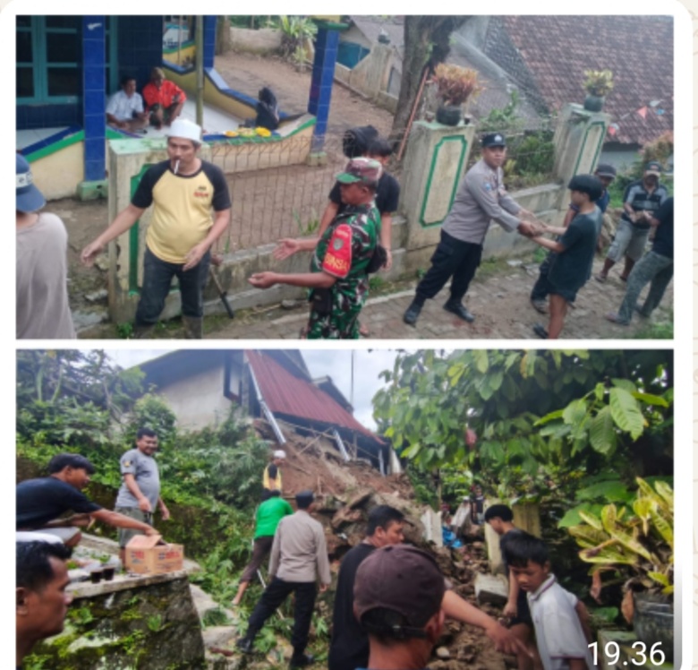 Gerak cepat anggota Polsek Rangkasbitung Polres Lebak saat mendapat aduan dari masyarakat untuk mendatangi tempat kejadian tanah longsor dan membantu warga untuk membersihkan sisa-sisa matrial yang longksor.