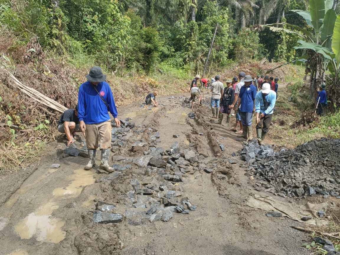 Kegiatan kali ini juga warga berhasil mengumpulkan material batu sebanyak 8 mobil yang baru terkumpul dan besar kemungkinan akan terus bertambah, material yang ada langsung dipasang untuk perbaikan jalan.