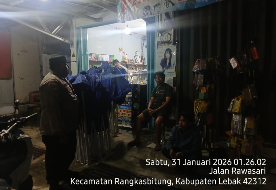 Gemasiber80news.com LEBAK – Berikan rasa aman, anggota Polsek Rangkasbitung, AIPTU Terry. MS dan AIPDA Wahyu Z.,giat patroli dialogis dan Sambangi warga di Jalan Rawa Sari,Kecamatan Rangkasbitung,Kabupaten Lebak.Sabtu pagi 31 Januari 2026,pukul.01.26 Wib.