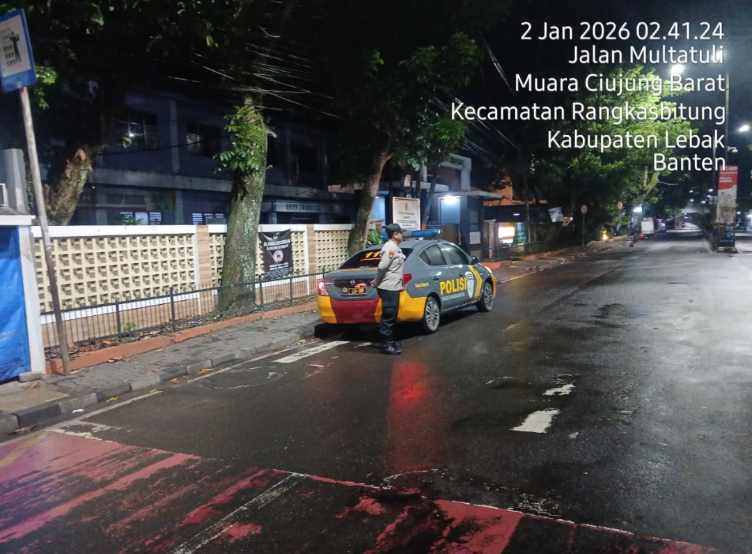 Gemasiber80news.com,LEBAK – KSPKT I Polsek Rangkasbitung Polres Lebak,melaksanakan kegiatan patroli dialogis guna menjaga keamanan dan ketertiban masyarakat (kamtibmas) serta memberikan imbauan penting kepada warga masyarakat.Jumat pagi 02 Januari 2026,pukul.02.41 Wib.
