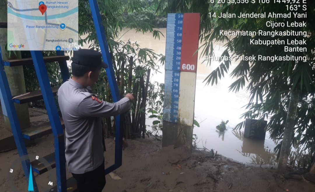 Dalam hal ini Kapolsek Rangkasbitung AKP Adi Irawan,.SH, perintahkan anggotanya untuk selalu inten melaksanakan pemantauan debit air.Kamis (22/01/2026).