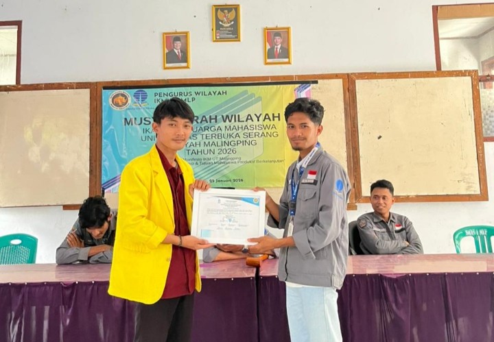 Gemasiber80news.com, LEBAK – M. Rifky Aliyafi dan Abidin terpilih sebagai Presiden Mahasiswa Wilayah (Preswil) dan Wakil Presiden Mahasiswa Wilayah (Wapreswil), dalam gelaran Musyawarah Wilayah (MusWil) II Ikatan Keluarga Mahasiswa (IKM) Universitas Terbuka Serang (UT) Wilayah Malingping Masa 2026-2028, pada 25 Januari 2026 bertempat di SMAN 1 Malingping.