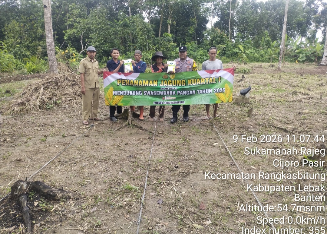 Melaksanakan kegiatan penanaman jagung kuartal I di lahan produktif seluas 1 hektar yang terletak di Kampung Turi, Desa Sukamanah, Kecamatan Rangkasbitung, Kabupaten Lebak.Senin (09/02/2026).