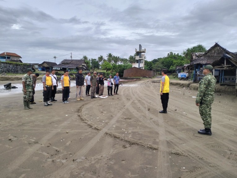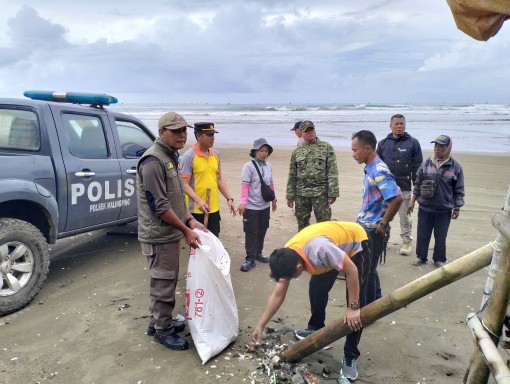 Kegiatan bersih-bersih sampah di Pantai Bagedur dipimpin langsung oleh Kapolsek Malingping AKP Dadan Jumhana.
