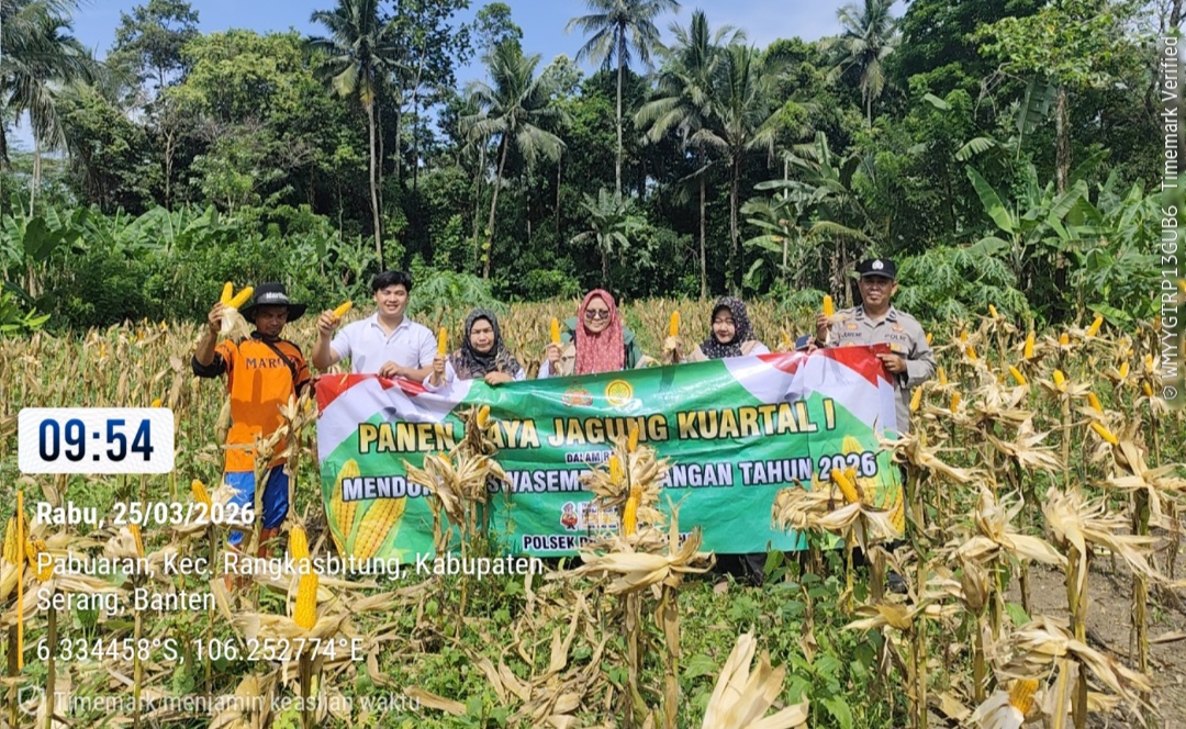 Gemasiber80news.com,LEBAK – Polsek Rangkasbitung Polres Lebak bersama Korwil BPP Pertanian Kecamatan Rangkasbitung,Pemerintahan Desa Pabuaran dan Kelompok Tani, melaksanakan kegiatan Panen Raya Jagung Kuartal I di Kampung Pulo, Desa Pabuaran, Kecamatan Rangkasbitung, Kabupaten Lebak.Rabu (25/03/2026).