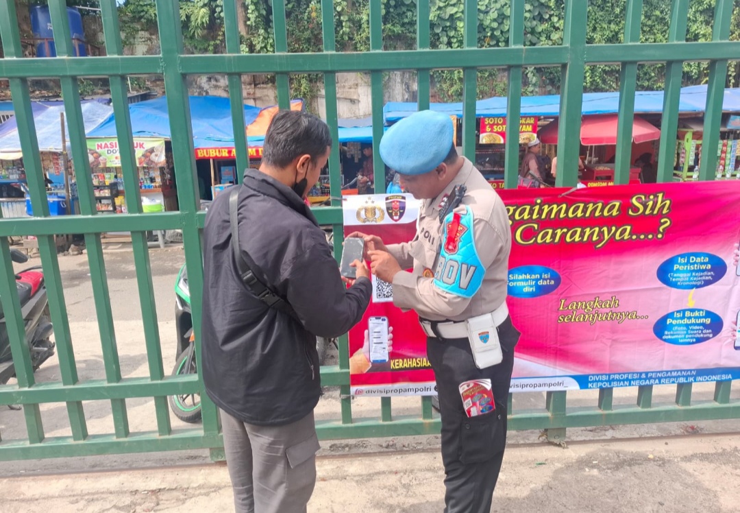“Benar,pagi ini anggota kami melaksanakan giat sosialisasi ke masyarakat perihal adanya cara pengaduan gunakan QR Barcode ke Divisi Propam Mabes Polri.Dengan adanya QR Barcode pengaduan tersebut.