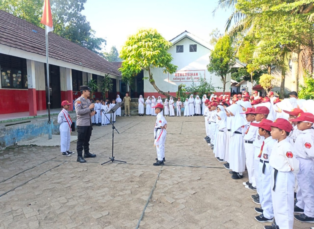 Gemasiber80news.com,LEBAK-Bhabinkamtibmas Polsek Rangkasbitung Polres Lebak, BRIPKA Riki Andriana, melaksanakan kegiatan sebagai pembina upacara bendera di SD Negeri Sukamekarsari.Senin (27/04/2026) pagi.