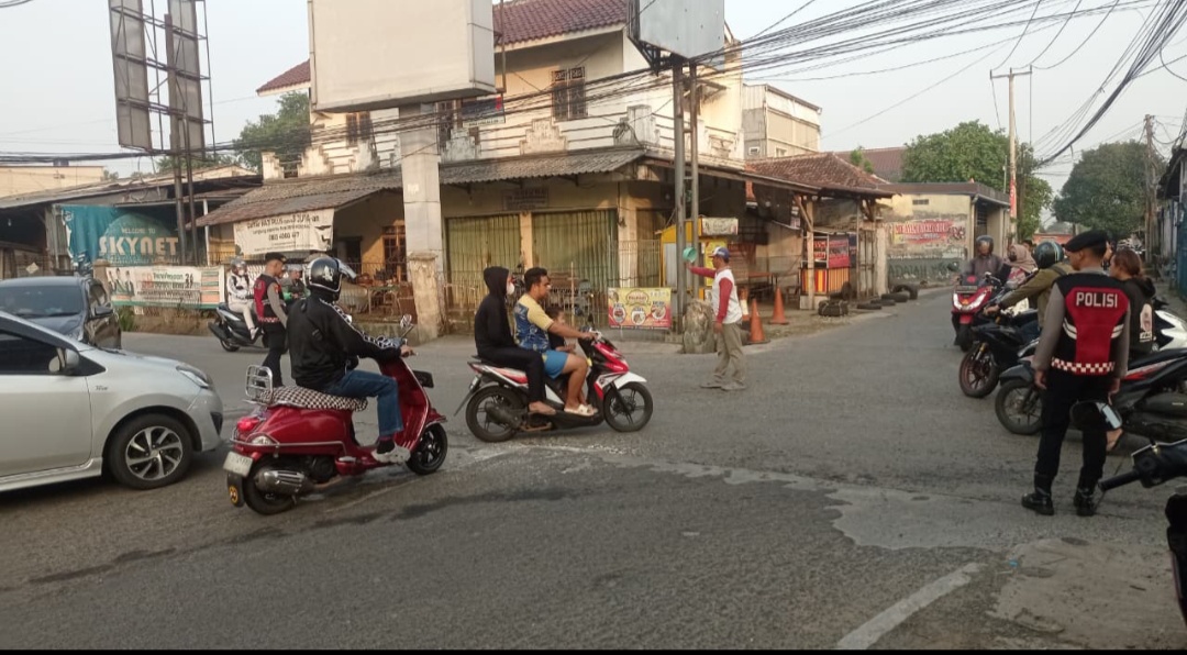 Kegiatan yang dimulai sejak pukul 06.00 WIB ini difokuskan pada dua lokasi strategis yang kerap mengalami kepadatan volume kendaraan, yakni Simpang Jalan Gunung Putri dan Simpang Leuwinanggung.