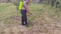 Bhabinkamtibmas Polsek Rangkasbitung Polres Lebak Semprotkan Cairan Pestisida dan Insektisida Ke Bibit Pohon Jagung Hibrida
