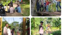 Giat polsek Panggarangan bersama masyarakat desa Sukajadi melaksanakan gotong royong perbaikan sementara jembatan gantung