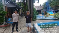 Sampaikan Pesan Kamtibmas, KSPKT I Polsek Rangkasbitung Polres Lebak Monitoring Obyek Wisata Kolam Renang