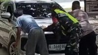Sinergitas TNI-POLRI Bantu Sopir Mendorong Mobil Amblas