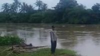 Kanit Binmas Polsek Rangkasbitung Polres Lebak Cek Debit Air Sungai Ciujung di Jalan Baypas Soekarno Hatta Rangkasbitung