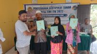 Sanusi Kades Sawarna Timur dan BPN Lebak Bagikan Sertifikat.
